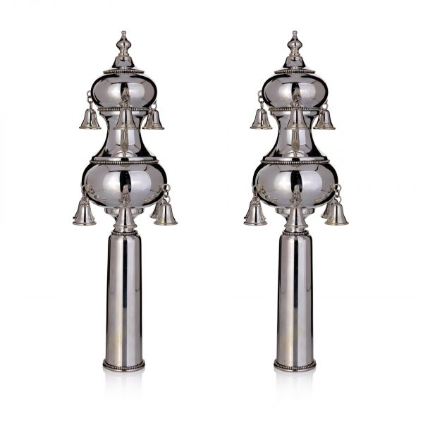 רימונים לספר תורה מכסף בשילוב פעמונים
